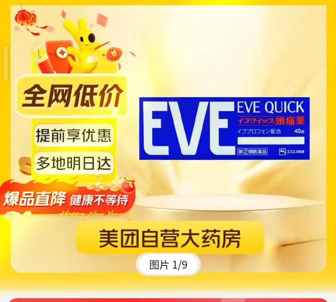 自营原装进口美团自营大药房止疼药头痛布洛芬[EVE]蓝色止痛片40片/盒